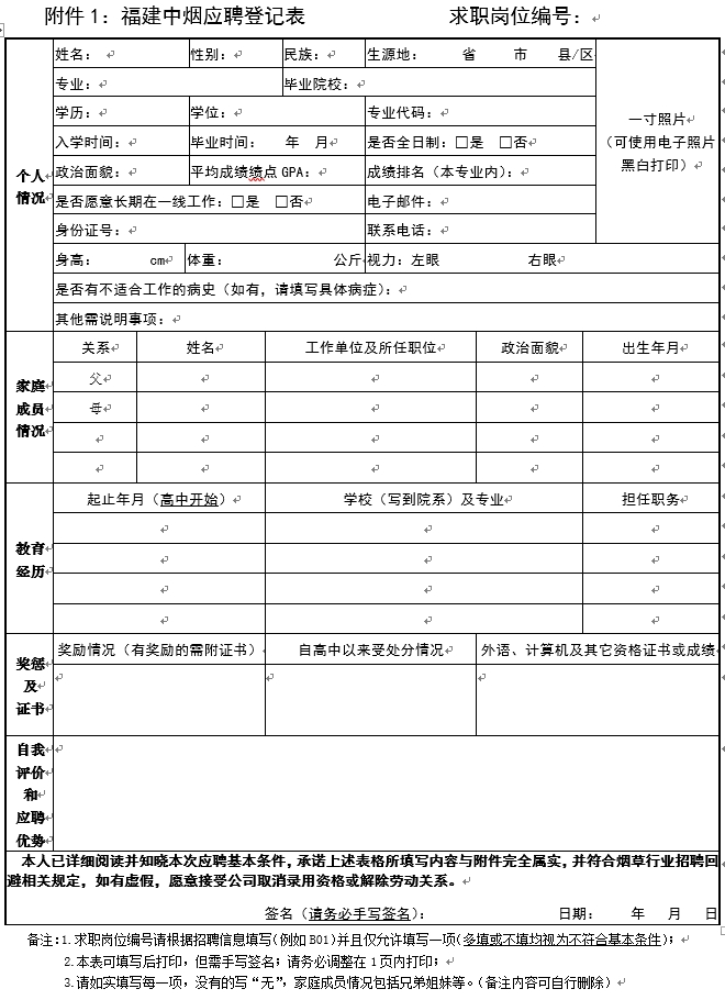 1. 福建中烟应聘登记表