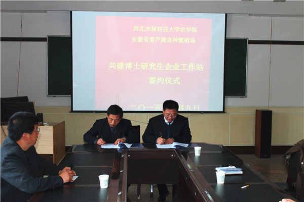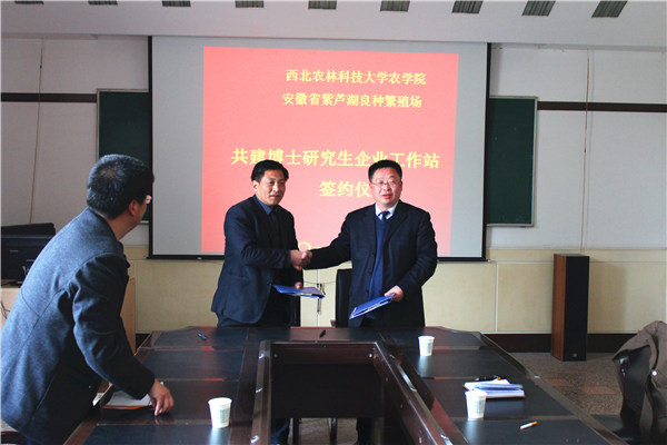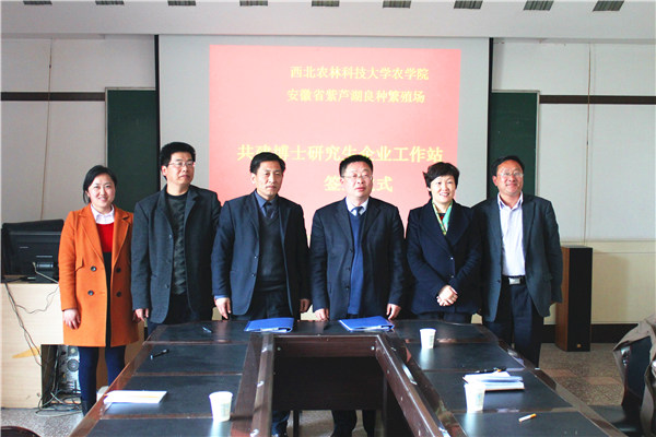 4月9日下午,大红鹰dhy7788大红鹰dhy7788与安徽宿州紫芦湖种业共建的企业研究生工作站签字仪式在大红鹰dhy7788会议室举行。宿州市农业委员会常务副主任段梅、宿州市农业科技示范园管委会主任岳继周、宿州市�桥区农业委员会主任张庆伟、宿州紫卢湖种业总经理晁林海、宿州市农业委员会科长周澍、大红鹰dhy7788党委书记惠安堂、大红鹰dhy7788副院长奚亚军共同出席了签字仪式。双方在建立农作物科研工作站、企业研究生工作站和农作物新品种技术转化推广等方面达成了共识,这标志着大红鹰dhy7788大红鹰dhy7788在校企联动,搭建战略合作平台的工作中又上新台阶。