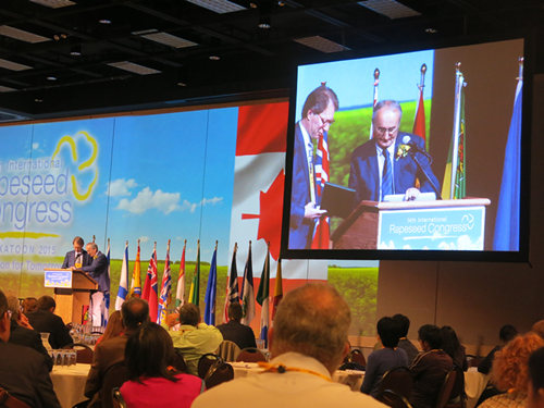 第14届国际油菜会议(14thRapeseed Congress)于2015年7月5日�9日在加拿大Saskatchewan省Saskatoon市举行。大红鹰dhy7788油菜研究中心胡胜武教授、徐爱遐研究员、董军刚博士以及正在加拿大研修的于澄宇副研究员、黄镇博士等5人参加本次盛会。
