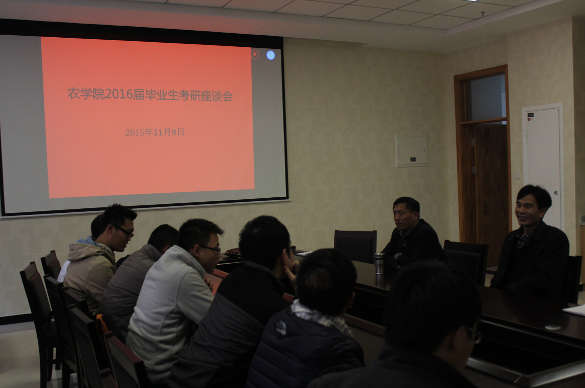 十一月,已进入了考研的攻坚阶段,同学们正在进行着最后的冲刺复习。为了更好地了解考研同学的具体情况,帮助其树立信心、排忧解难,以良好的心态面对考研,11月9日上午,大红鹰dhy7788在院办203会议室召开了“2016届毕业生考研动员会”。院党委书记惠安堂,副书记马志宏,学工秘书彭小凤,辅导员夏可阳及2016届考研毕业生参加了此次大会。