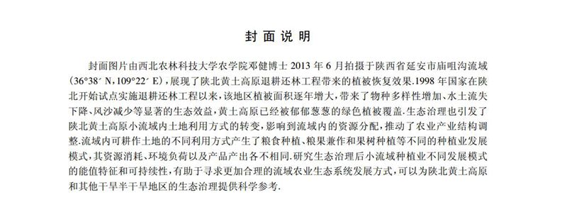 近日,杨改河教授指导的博士研究生邓健等人发表的《黄土高原典型流域种植业发展模式的能值分析》的研究论文被国内生态学研究主流期刊《应用生态学报》选为2016年第5期封面文章。