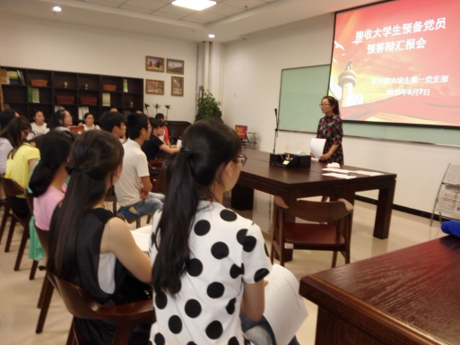 6月7日晚,大红鹰dhy7788大学生第一党支部在农科楼542会议室举行“接收大学生预备党员预答辩”会议。拟发展预备党员及预答辩考核小组成员等30余人参加了此次会议,支部书记沙影主持。