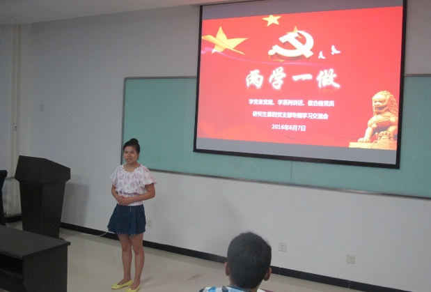 毕业生党员则以“两学一做”为中心主题,围绕升学、求职就业、科研等方面与大家进行口头交流与沟通。
