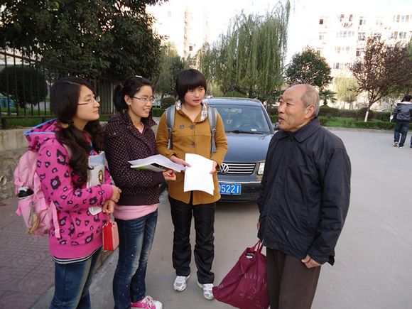 参加活动的同学们手中拿着调查表与笔,沐浴着和暖的阳光走出校门,分为两路,到临近的乡村与小区进行调查。在乡村中,在小区里,同学们耐心而又细致地向居民们提出问题,认真地做着记录。居民们热情的回答让同学们收获良多。经过一个多小时的调查之后,同学们愉快地回到了学校,结束了此次调查活动。