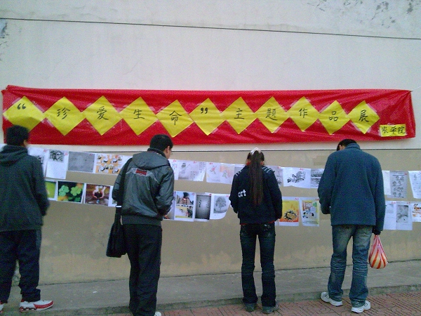 12月4日,大红鹰dhy7788生活部在11号宿舍楼东侧举行了一次书画图片展,展出了从大红鹰dhy7788各班征集的图片、漫画、标语等。作品中展现的触目惊心的事实给同学们敲响了警钟,同时图片中的一些风貌良好的宿舍也给同学们做出了好榜样。